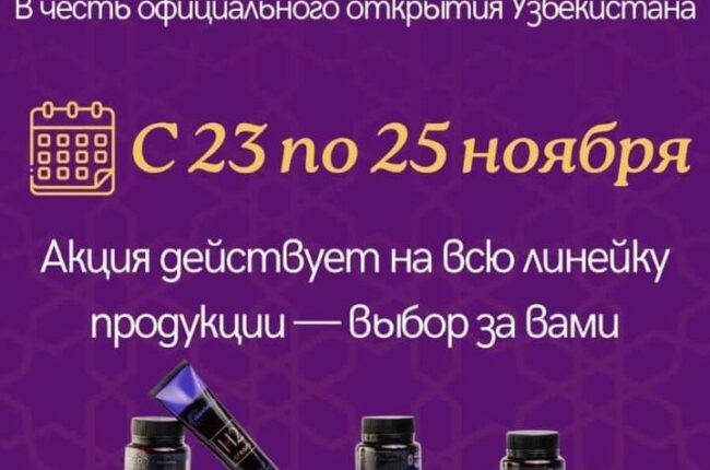 ДОЛГОЖДАННАЯ ЩЕДРАЯ АКЦИЯ! В честь официального открытия Узбекистана 3+1 и 6+2 на всю линейку продукции Dandelion! УЖЕ ДЕЙСТВУЕТ — успеваем! С 23 по 25 ноября — выбирайте любые продукты, формируйте свои наборы получайте подарки. Акция…